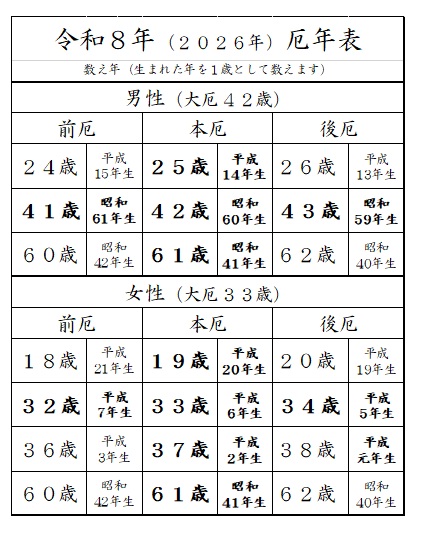 随時厄除け祈願を受け付けております。厄年の方は当神社にてお祓いをお受け頂き